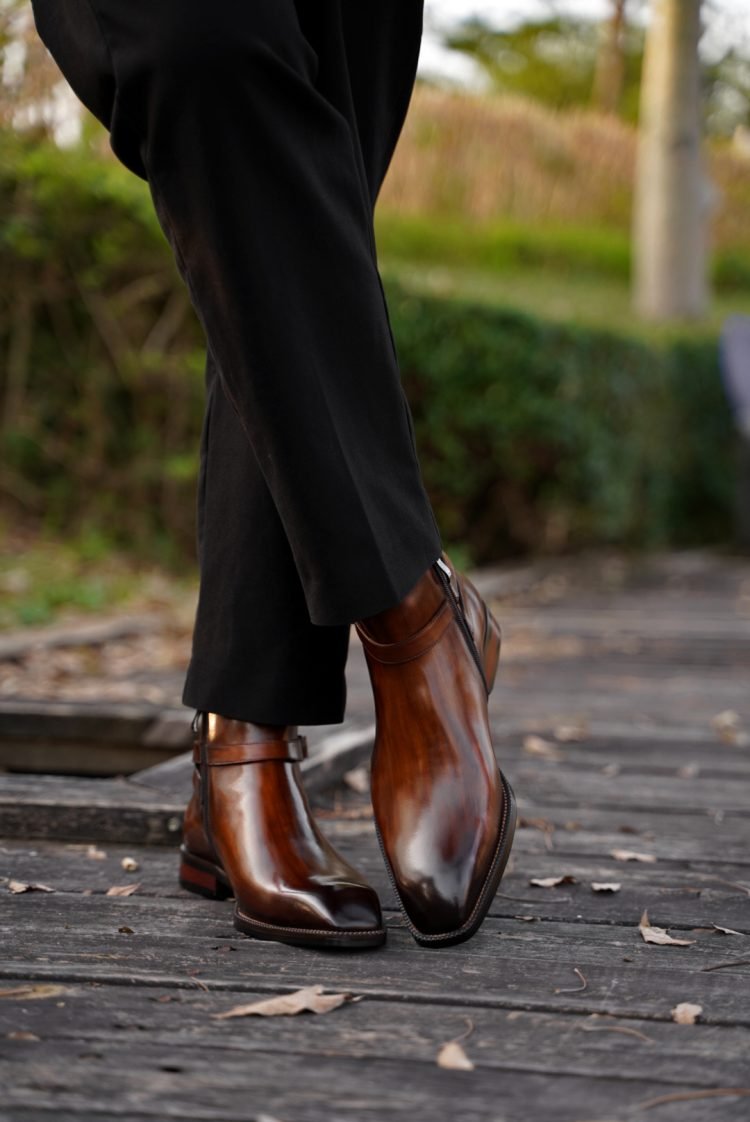 H855-K03 Hengxin Private Label Brown Leather Dress Boots Mens Shoes